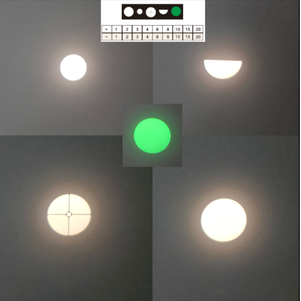 19 Ajustes: Lentes ajustáveis de -20d a +20d que permitem foco preciso para diferentes condições e necessidades de exame.