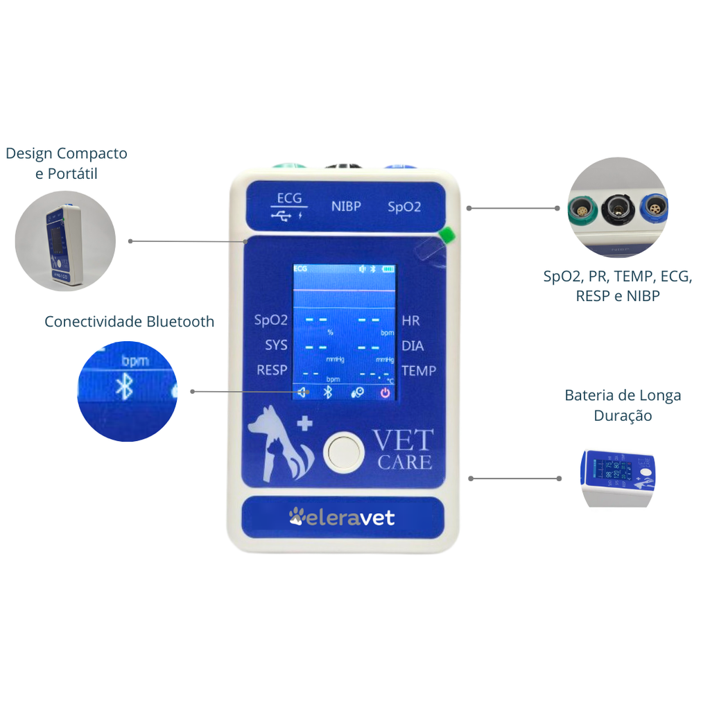O Monitor Multiparamétrico Portátil EV-MM24 Vet é ideal para monitoramento preciso e prático da saúde dos pets. Compacto e leve, acompanha sinais vitais essenciais em tempo real: SpO2, PR, TEMP, ECG, RESP e NIBP. A conectividade Bluetooth integra-se ao aplicativo, permitindo configurar alarmes, revisar históricos e compartilhar relatórios facilmente. Com bateria de longa duração de até 12 horas e interface simples, é perfeito para uso doméstico e profissional, garantindo gestão eficaz e segura da saúde dos animais.
