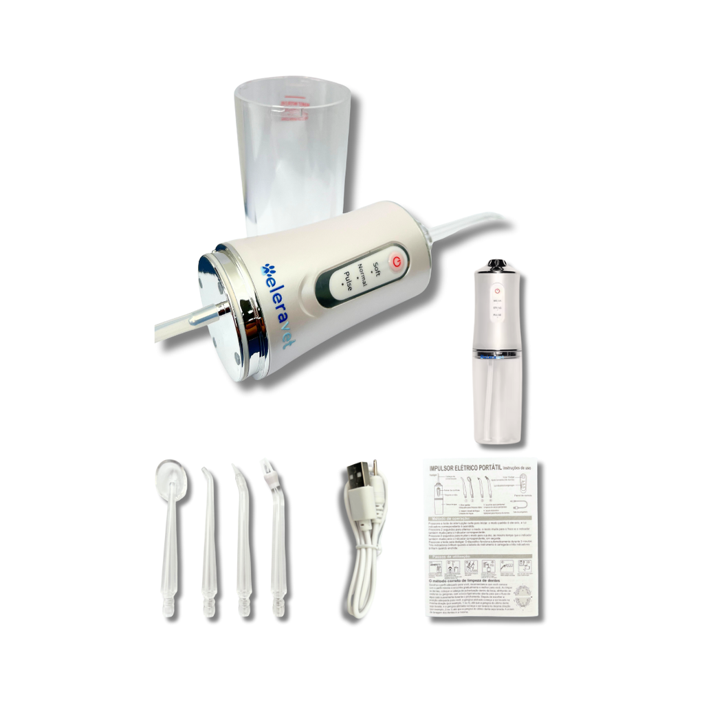 Irrigador Oral Portátil EV-IO1 Veterinário é indicado para a higiene oral veterinária de animais de qualquer porte, especialmente de pequeno porte, auxiliando na remoção de resíduos alimentares, placa bacteriana e biofilme gengival. Compacto, sem fio e fácil de operar, é ideal para uso em clínicas veterinárias, hospitais e atendimentos domiciliares, complementando procedimentos de profilaxia e manutenção da saúde bucal com segurança e conforto.