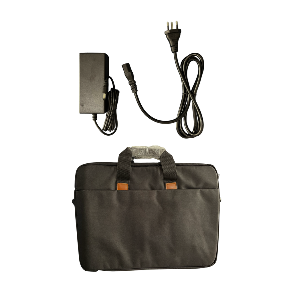 Bateria recarregável e removível: Bateria de íons de lítio substituível, com autonomia superior a 3 horas de uso contínuo e recarga aproximada de 2 horas.