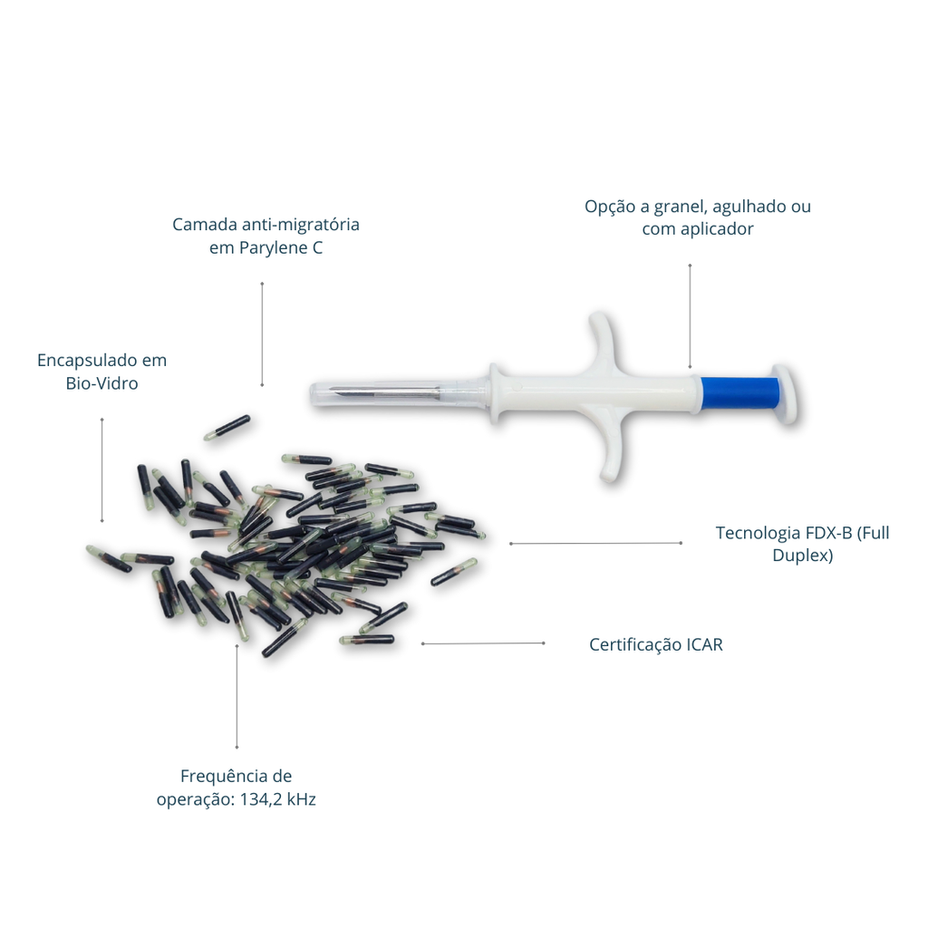 Leitura e edição pós-implante: As informações armazenadas podem ser consultadas e atualizadas após o chip estar implantado, utilizando leitores compatíveis.