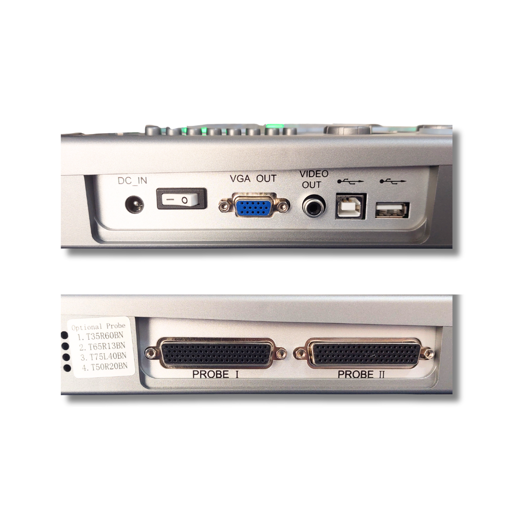 - Sonda Linear Retal / 6.5 MHz, frequência ajustável entre 6.5–8.5 MHz e profundidade ≥40mm