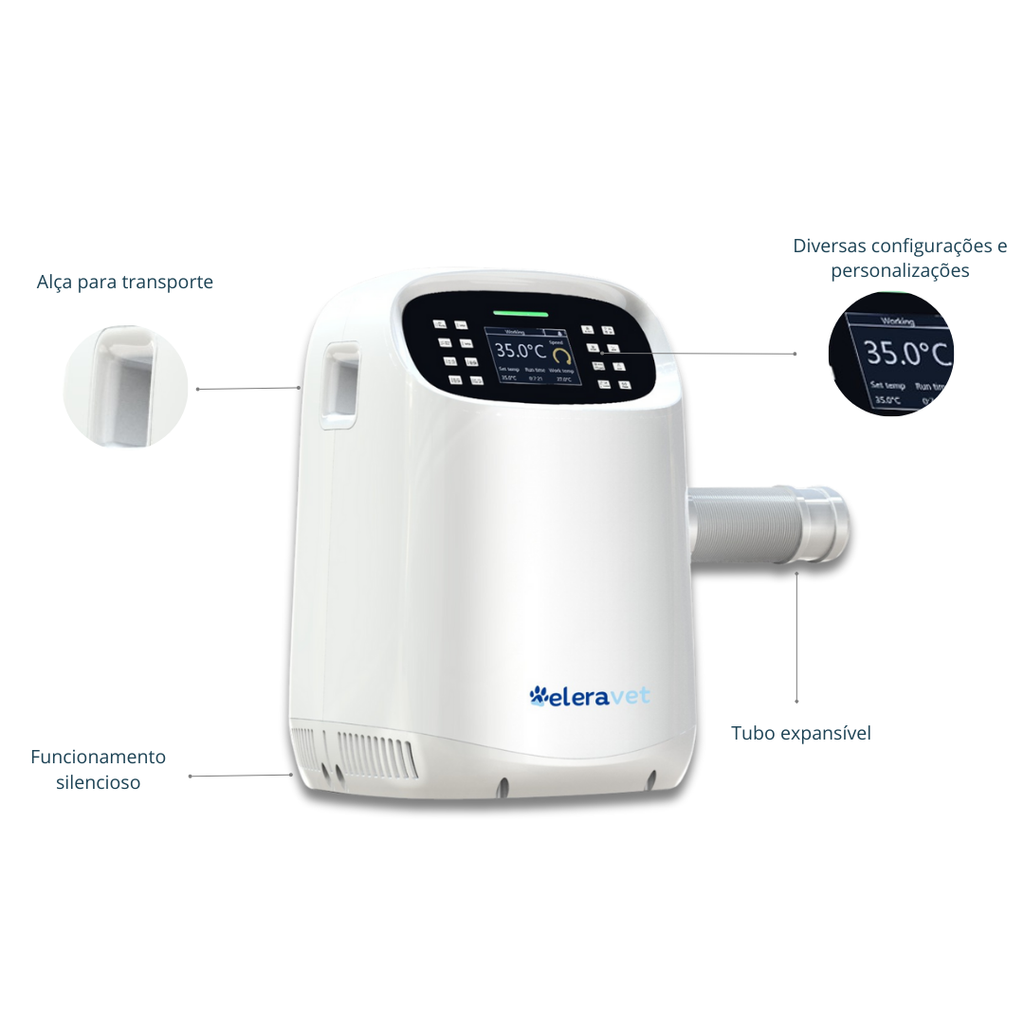 O Sistema de aquecimento ar forçado EV-SA1 Vet é a solução ideal para aquecimento seguro e eficiente de pacientes veterinários em ambientes clínicos e cirúrgicos. Desenvolvido especialmente para uso veterinário, este equipamento utiliza ar forçado para manter a temperatura corporal dos animais, ajudando a prevenir hipotermias durante procedimentos. Compacto, silencioso e fácil de operar, oferece tecnologia de ponta com controle digital, recursos de segurança e acessórios versáteis para diferentes portes e espécies.